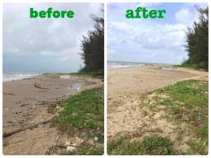 Hasil yang didapatkan setelah dilakukannya kegiatan susur pantai adalah pantai terlihat lebih bersih dari sebelumnya, berikut dokumentasi saat sebelum dan sesudah kegiatan susur pantai.