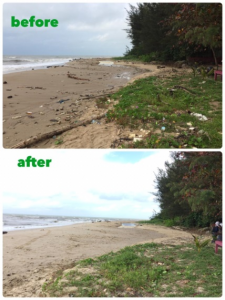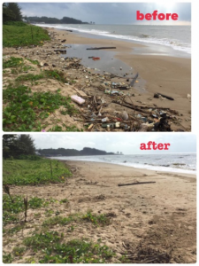 Hasil yang didapatkan setelah dilakukannya kegiatan susur pantai adalah pantai terlihat lebih bersih dari sebelumnya, berikut dokumentasi saat sebelum dan sesudah kegiatan susur pantai.