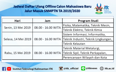 Perpanjangan Daftar Ulang Offline/Fisik Peserta Lolos SNMPTN ITK 2019