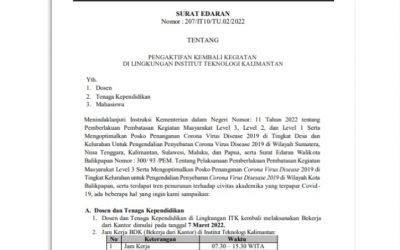 SE Pengaktifan Kembali Kegiatan di Lingkungan ITK